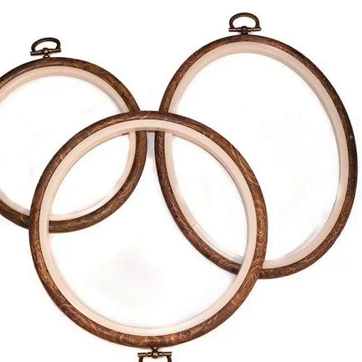Vintage imitation wood grain body stretch oval plastic embroidery flower frame